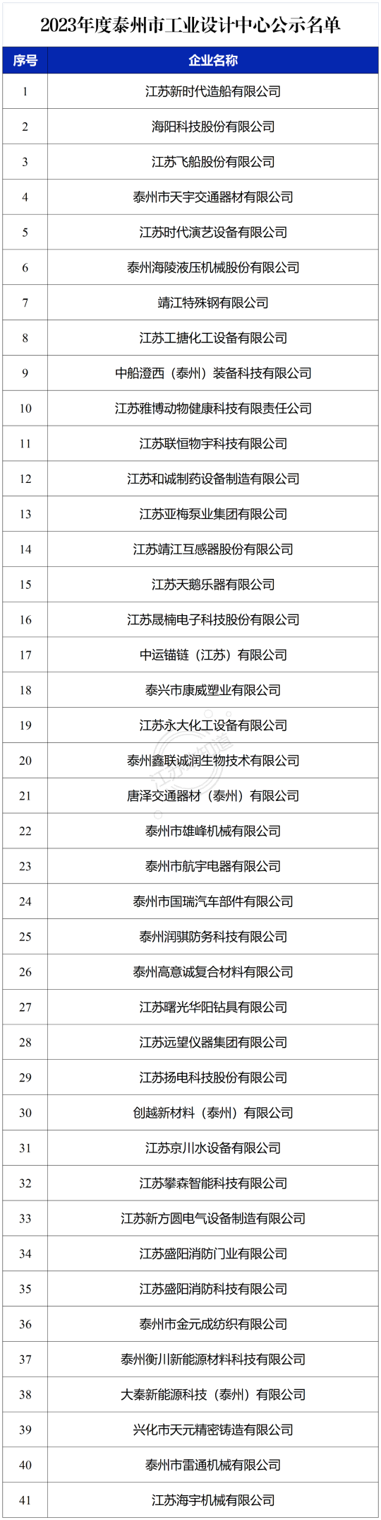 根據(jù)市級(jí)工業(yè)設(shè)計(jì)中心遴選計(jì)劃,經(jīng)企業(yè)自主申報(bào),各市(區(qū))工信部門初審?fù)扑],專家評(píng)審,擬確定江蘇新時(shí)代造船有限公司等 41 家企業(yè)為2023年度泰州市工業(yè)設(shè)計(jì)中心,現(xiàn)予以公示。
