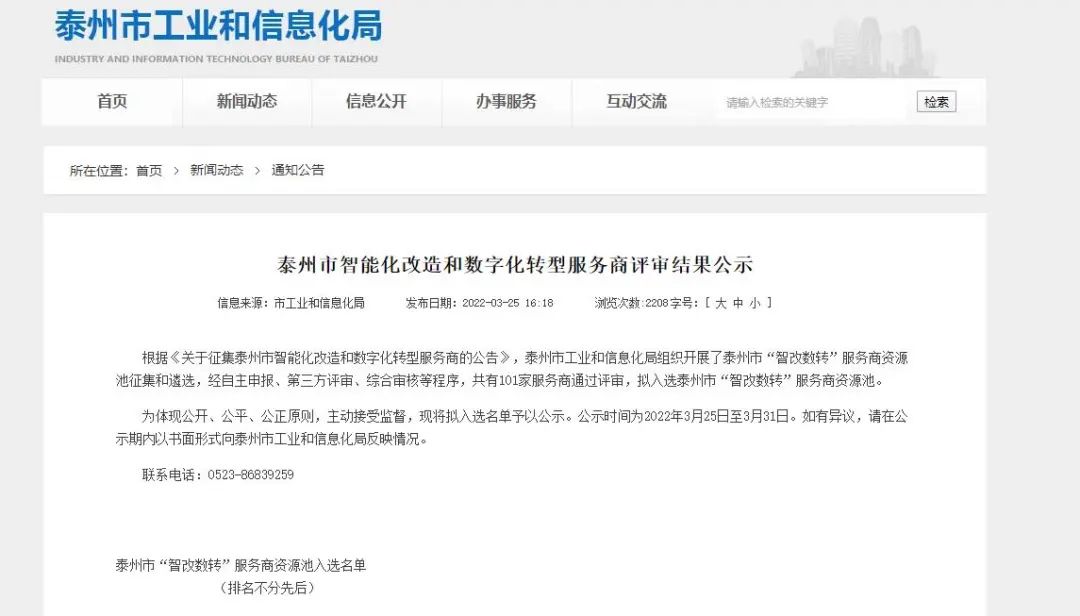 根據《關于征集泰州市智能化改造和數字化轉型服務商的公告》,泰州市工業和信息化局組織開展了泰州市“智改數轉”服務商資源池征集和遴選,經自主申報、第三方評審、綜合審核等程序,多家服務商通過評審,入選泰州市“智改數轉”服務商資源池。江蘇優特力科技服務有限公司榜上有名!